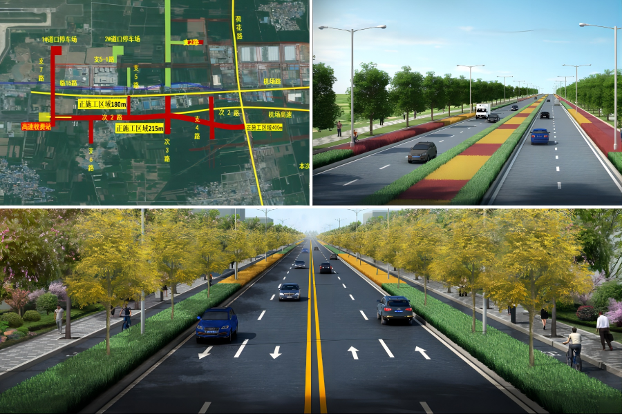 济南遥墙机场二期改扩建工程城市道路工程是连接遥墙机场与济南主城区的重要通道,也是连接临空片区和临港片区的关键道路群,包含南主进出场路高架及地面道路工程等施工内容。本次验收的济南遥墙机场二期改扩建工程首批城市道路工程包含次3路、支2路、支5路、支5-1路共4条道路,道路长2.8公里,道路红线宽30~50米。