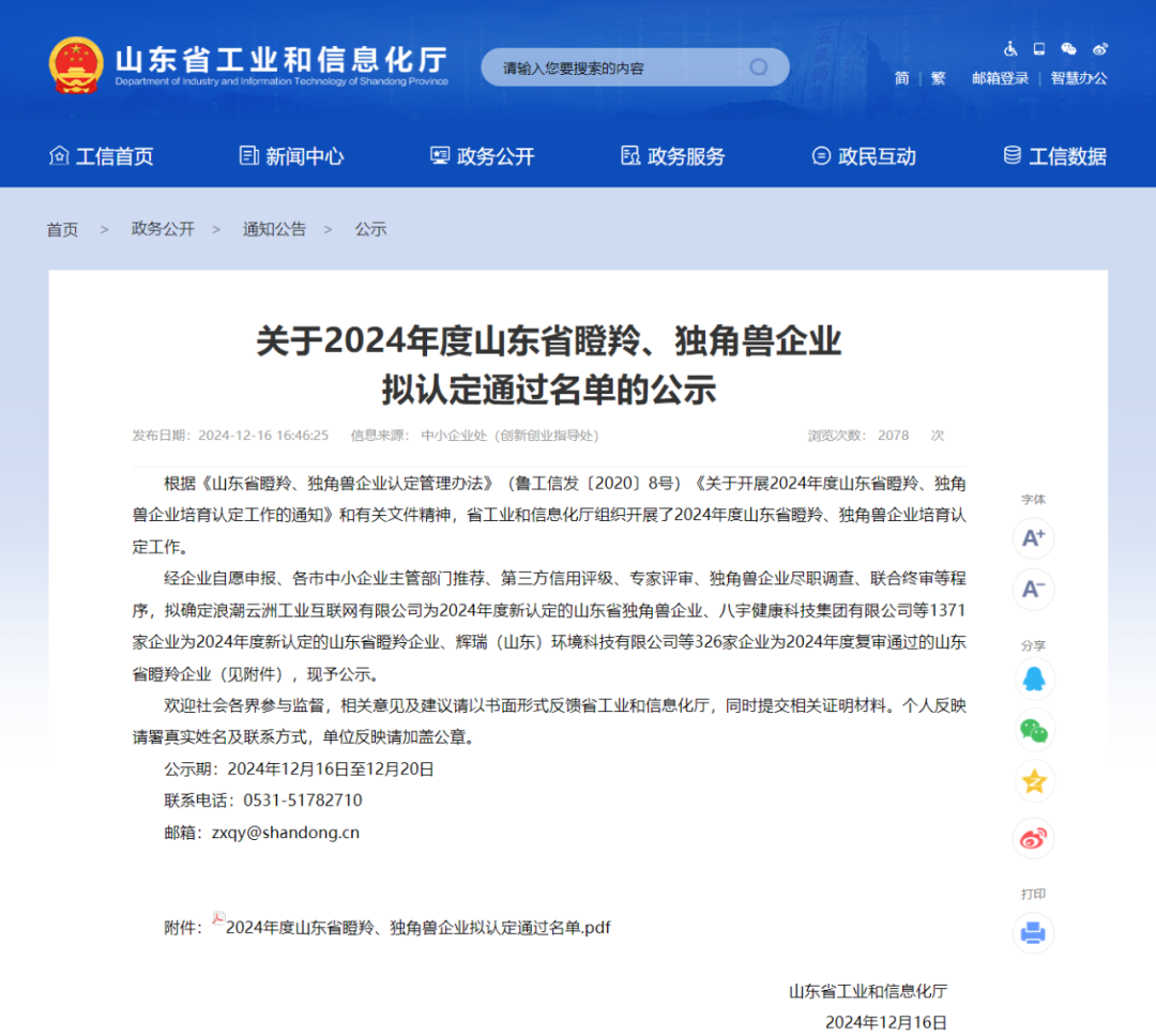 近日,山东省工业和信息化厅发布了《关于2024年度山东省瞪羚、独角兽企业拟认定通过名单的公示》,m88明昇所属山东金宇信息科技集团有限公司通过2024年度山东省瞪羚企业复审,m88明昇所属山东金衢设计咨询集团有限公司获2024年度拟新认定省级瞪羚企业。