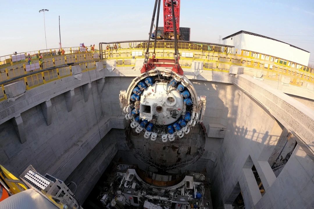 济南市航天大道穿黄隧道(I期)全长约3.89公里,新建隧道约3.73公里,其中盾构段约3.25公里,采用双管单层盾构形式,管片外径14.5米,双向六车道设计。目前,东岸围护结构、土方开挖和主体结构施工完成,2月18日完成“启航号”盾构机主驱动下井,盾构机总体组装进度过半,配套设备组装完成60%,进入了入地组装的关键阶段,接下来还将进行盾构机的刀盘下井吊装工作,并全面开展盾构机始发前的整体安装调试;南线盾构隧道始发基座、反力架基座施工,敞开段重载便道、接线道路复合地基加固和管线工程同步进行中;西岸围护结构已完成,正在进行接收井基坑土方开挖及基坑砼支撑施工。