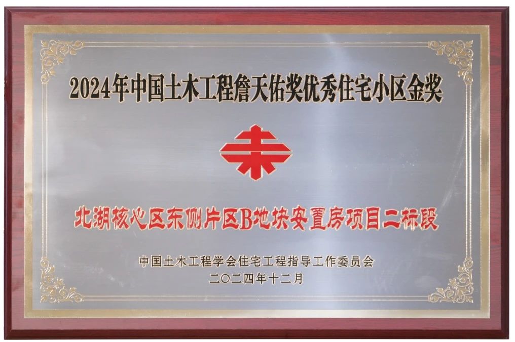 近日,2024年中国土木工程詹天佑奖优秀住宅小区金奖获奖工程名单公布,由m88明昇投资建设的北湖核心区东侧片区B地块安置房项目二标段获中国土木工程詹天佑奖优秀住宅小区金奖。