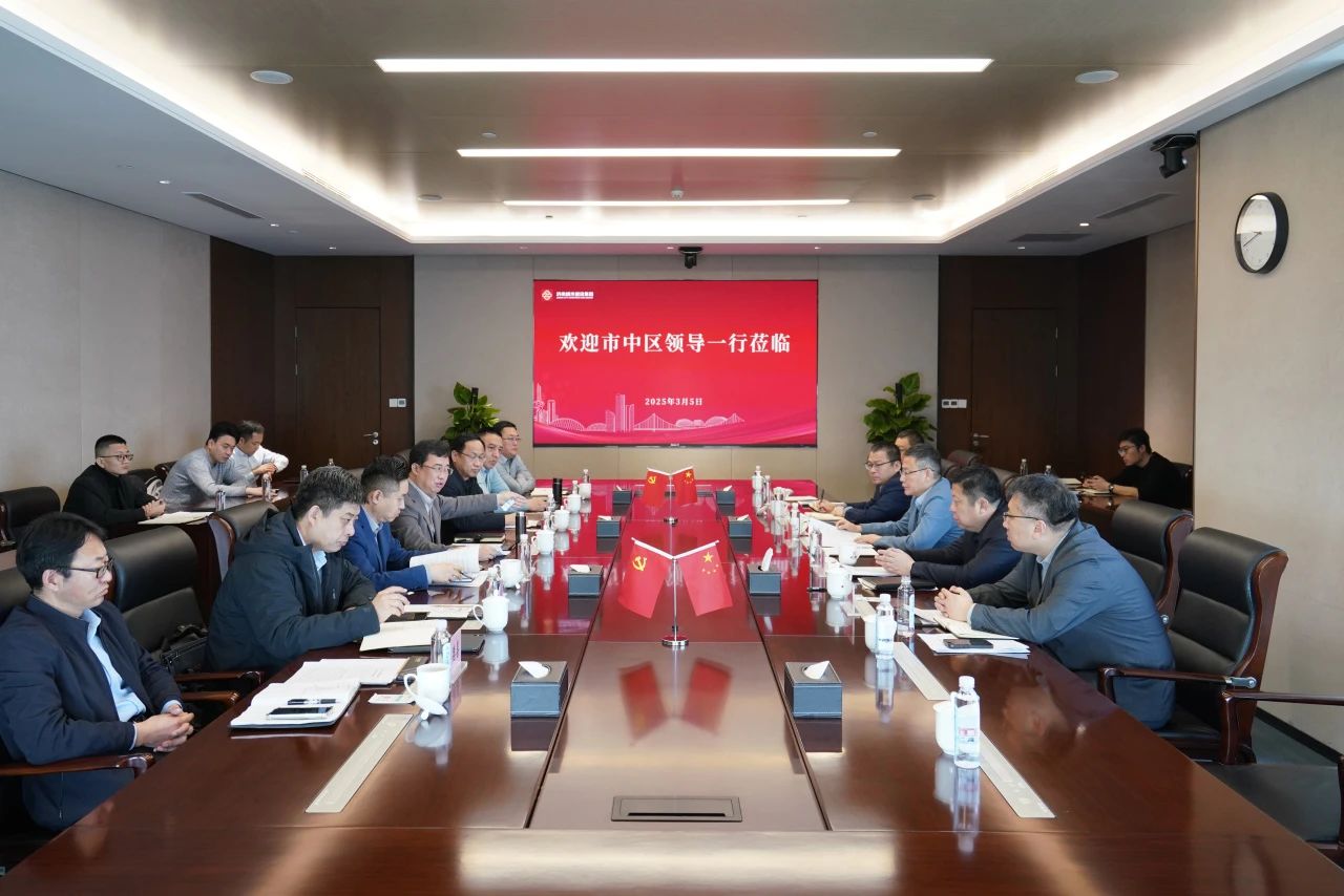 3月5日,市中区委副书记、区长孟庆顺一行到访m88明昇,就片区开发、工程建设等事项座谈交流,市中区委常委、副区长张同园,m88明昇党委书记、董事长许为民,集团党委副书记、总经理杨峰,集团总经理助理王超参加座谈。
