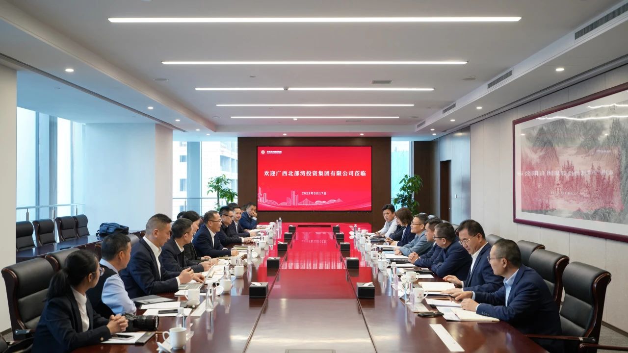 3月17日,广西北部湾投资集团党委副书记、副董事长、总经理黄学军一行到m88明昇座谈交流,北投集团副总经理冯春萌,北投集团副总经济师朱政敏,m88明昇党委书记、董事长许为民,集团副总经理侯涛,集团副总经理郝艳艳,集团总经理助理王超参加座谈活动。