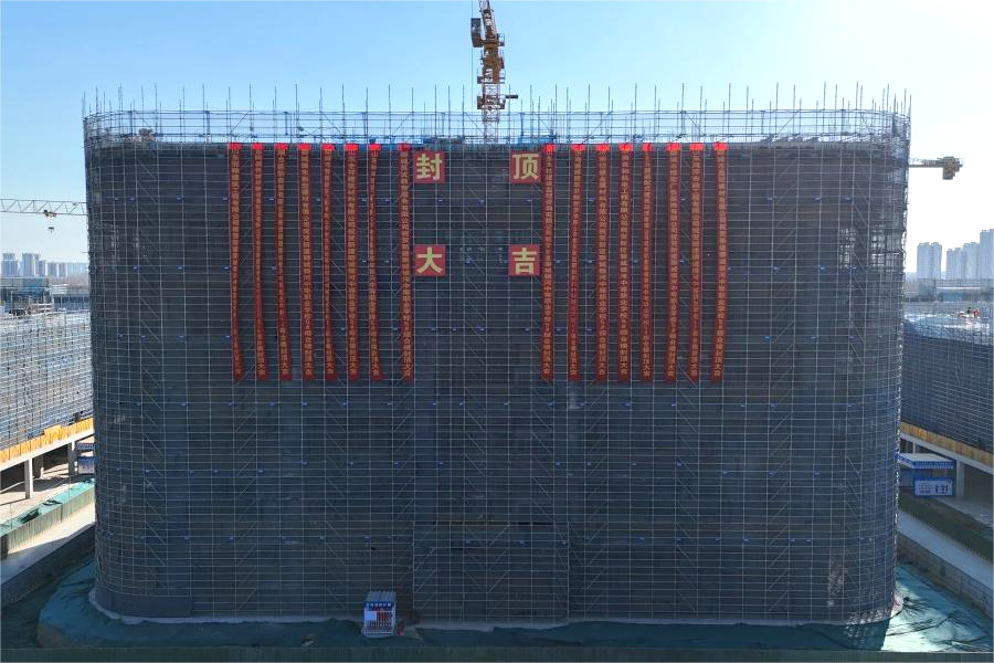 聊城银河职业学校项目所有楼栋主体结构全面封顶。本次封顶的三个楼栋历时18个小时浇筑完成,共计浇筑1015立方混凝土。工程建设期间,项目团队科学统筹、精心规划、理清工作顺序,进行流水线式施工,确保各项工作有条不紊推进。紧抓施工进度、质量、安全管控,组织开展“质量月”质量提升活动,通过标准化工艺学习、技能竞赛等切实提高现场施工质量,严格落实全员安全生产责任制,全力保障现场施工安全,助力项目全面转入二次结构和装饰装修施工阶段,向竣工交付发起全力冲刺。
