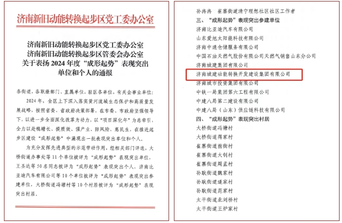 2月6日,济南新旧动能转换起步区召开2025年工作动员大会,通报表彰2024年度“成形起势”表现突出的单位及个人。m88明昇所属济南城建动能转换开发m88明昇有限公司,荣获2024年度起步区“成形起势”表现突出参建单位。