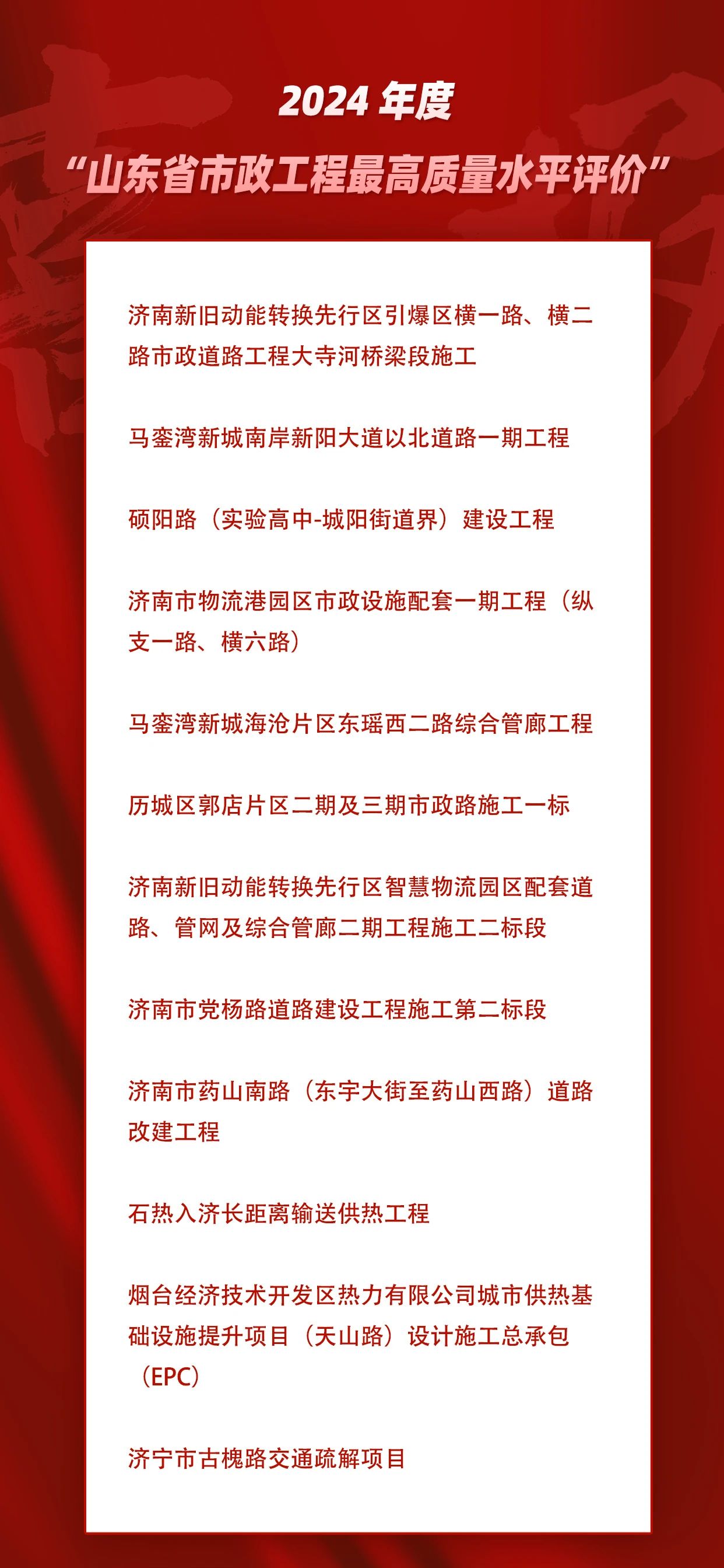m88明昇参与的12项工程获2024年度山东省市政工程最高质量水平评价