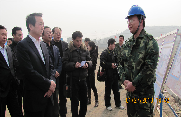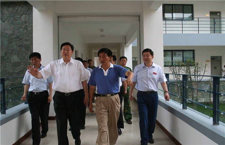 2009年6月,时任山东省委副书记、省长姜大明(右二)等省市领导一行到擂鼓镇视察援建工作。